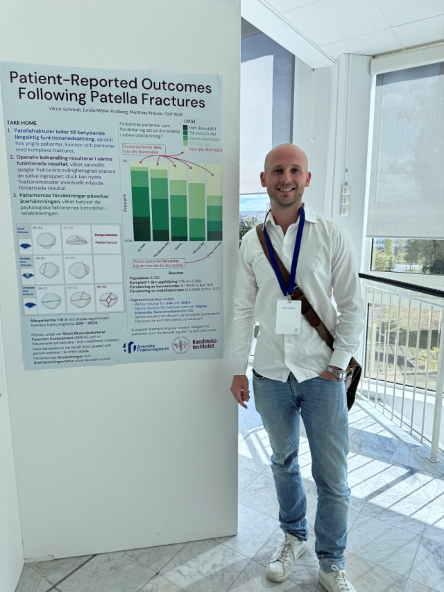 2025-08-27Grattis Viktor Mili-Schmidt som vann priset för bästa poster under Ortopediveckan i Jönköping. Postern beskriver patientrapporterat utfall efter patellafrakturer, där patientunderlaget hämtades ur SFR.