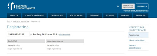 2022-10-24Det pågår f n ett arbete med att utveckla en funktion i Frakturregistret för att kunna scanna in implantatens streckkoder direkt till Frakturregistret. Under detta arbete är en ruta för "Implantatregistrering" synlig i Demoversionen av Frakturregistret.